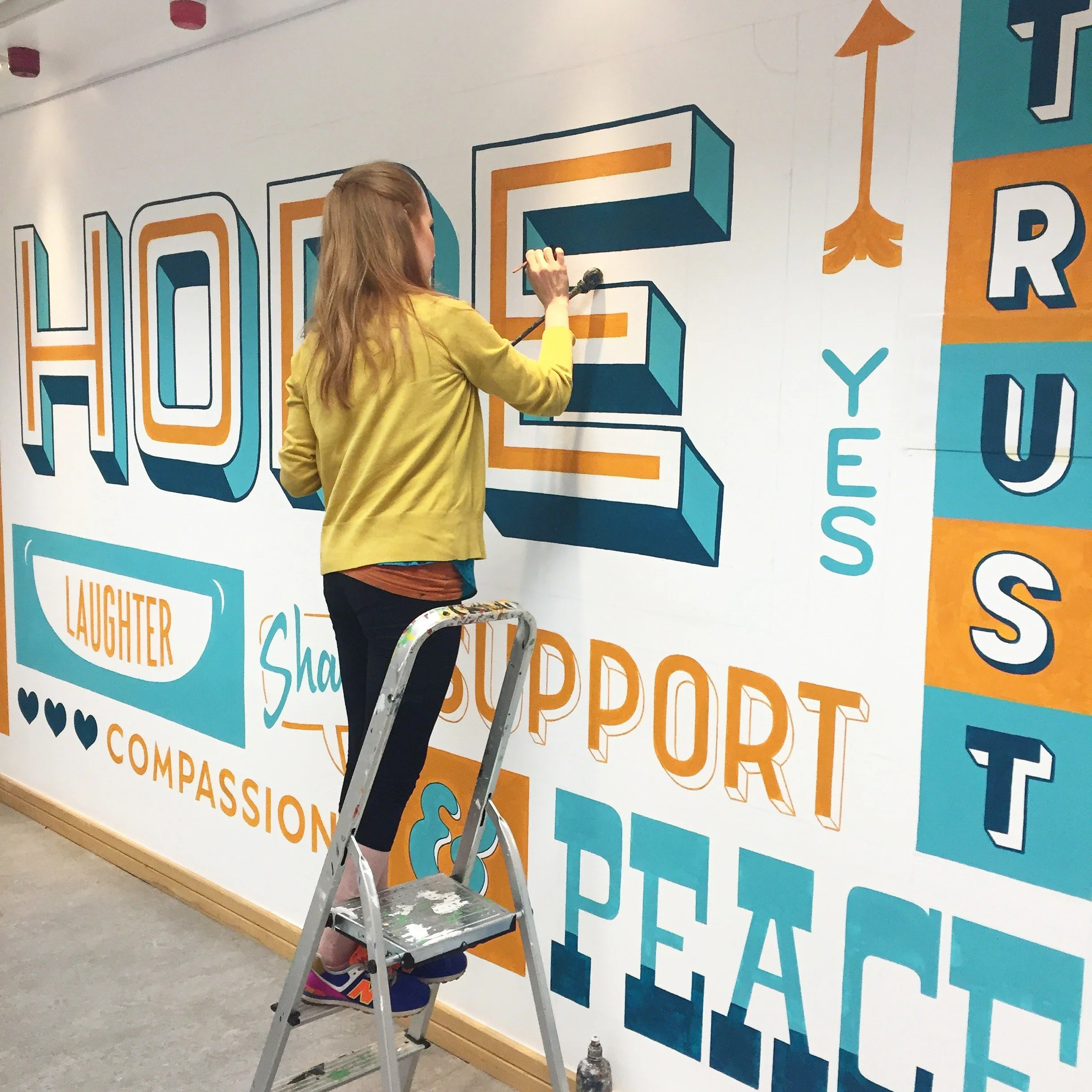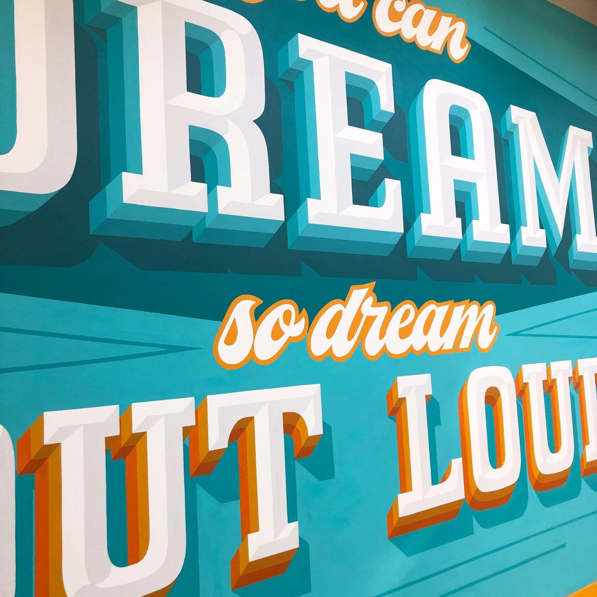 Vanessa Power, the lettering and mural artist behind Signs of Power, specialises in the creation of unique word based murals and hand painted signs. Her artwork often features colloquial phrases and positive slogans, uplifting and inspiring viewers.